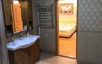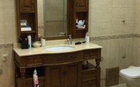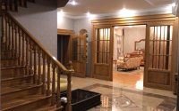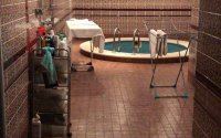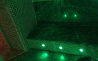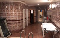 В цокольном этаже две бани, русская и хамам, бильярдная, прачечная и подсобные помещения, бассейн.