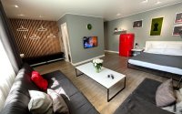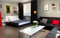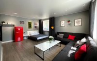 1- комнатная квартира-студия бизнес-класса с двуспальной кроватью и дополнительным спальным местом - диваном на 1 человека, второй комплект постельного и полотенец предоставляем бесплатно, без дополнительной платы. Отлично подходит для командированных и семей с детьми, сдается на любой срок. Квартира без посторонних запахов, не прокурена и идеально убрана, фото соответствуют. Есть видеообзор.