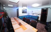 Технический оснащен, целевое назначение ресторан, подключены наблюдение, интернет. Дополнительно к парадной входной группы иметься два служебных выхода. На нулевом уровне приватная зона с 3-VIP залами на до 20 персон, это VIP зал с большим экраном и проектором вместимостью до 18 посадочных мест, далее VIP-зал до 15 посадочных мест, где иметься кожаные диван, пуфы с атмосферным интерьером, а также 3 VIP зала. VIP-комнатах имеются независимые приточной вытяжной системы и кондиционирование, отдельные уборные, разное освещение и подсветки.