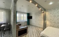 1-комнатная квартира-студия бизнес-класса с двуспальной кроватью и дополнительным спальным местом - раскладным диваном на 2 человека, второй комплект постельного и полотенец предоставляем бесплатно, без дополнительной платы. Отлично подходит для командированных или для семьи с детьми, сдается на любой срок. Квартира без посторонних запахов, не прокурена и идеально убрана, фото соответствуют. Есть видеообзор. Есть кондиционер и балкон.