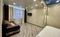 1-комнатная квартира-студия бизнес-класса с двуспальной кроватью и дополнительным спальным местом - раскладным диваном на 2 человека, второй комплект постельного и полотенец предоставляем бесплатно, без дополнительной платы. Отлично подходит для командированных или для семьи с детьми, сдается на любой срок. Квартира без посторонних запахов, не прокурена и идеально убрана, фото соответствуют. Есть видеообзор. Есть КОНДИЦИОНЕР и балкон.