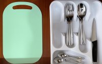 → Белая посуда, бокалы, фужеры и столовые приборы на 4 персоны;