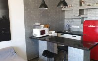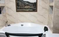 В квартире на кухне встроенная кухня, электрическая плита, вытяжка, холодильник, микроволновка, барный стол со стульями для завтрака. В ванной комнате просторная джакузи, стиральная машинка.