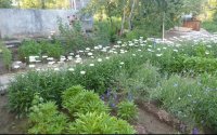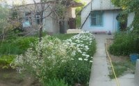 — Огород и сад с яблоней, вишней, черешней, смородиной, шиповником, абрикосом и орехом.