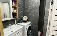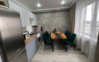 У квартиры очень интересный дизайн, с элементами дерева, что делает квартиру очень уютной.