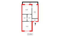 Квартира общей площадью 58,1кв.м, кухня 8,6кв.м.