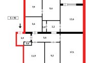 Квартира общей площадью 90 квадратов, раздельная планировка, 4 жилые просторные комнаты, кухня 8м2,