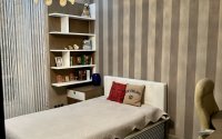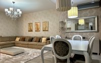 лифта). Теплая (есть подогрев пола в 2-х с/у и прихожей), светлая, чистая, тихий и охраняемый двор. Мебель, сантехника, техника, свет - Италия. Улучшенная, 3 спальни, 2 с/у (1 с/у - с гидромассажной ванной, 2 с/у - с паро-гидромассажной душевой кабиной), все комнаты изолированы, кухня-студия, везде кондиционеры. Большой холл-зал-гостиная, отдельная гардеробная комната + гардеробный шкаф (в холле), отд. прачечная/гладильная с техникой (стиральная + сушильная машинки, мебель и мойка), отд. кладовка со стеллажами.