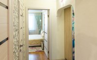 В квартире выполнен свежий качественный ремонт, установлены окна с трехкамерным стеклопакетом и современные двери. Все коммуникации заменены. В каждой комнате есть современная мебель и техника. В гостиной установлены два дивана, кресло и гарнитур. В спальнях есть двуспальные кровати, шкафы для одежды, столы и тумбочки. Кухня оборудована всем необходимым: кухонным гарнитуром, духовой плитой, вытяжкой, варочной поверхностью, двухкамерным холодильником, посудомоечной машиной, титаном, трехступенчатым фильтром для воды и микроволновой печью. В санузле установлена новая сантехника Idis, стиральная машина и ванна. Балкон застеклен пластиковыми окнами с двойным стеклопакетом, утеплен и сделан качественный ремонт. На балконе установлен большой вместительный шкаф. В квартире проведен интернет Билайн. В квартире остается вся почти вся бытовая техника и мебель. Сделано утепление стены смежной с кладовкой, так как у всех подобных квартир эта стена промерзает зимой если подъезд не отапливается.