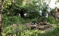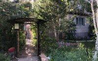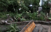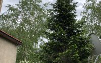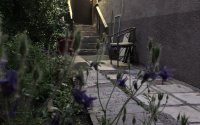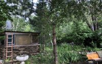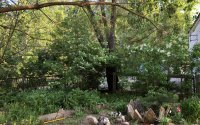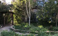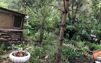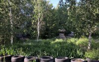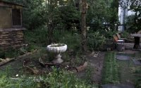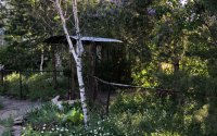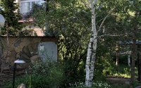 Придомовая территория благоустроена и озеленена самостоятельно, частично огорожена, растут пихта, сосны, березы, 8 видов сирени, рябина, бузина, пестролистный дерен, сумах, спиреи, можжевельник, хосты, папоротник, ивы мацудана, каштан, дуб, много многолетних цветов с разными сроками цветения.