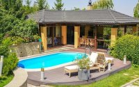 С бытовой техникой, холодильник, микроволновая печь, чайник, посудомоечная машина, стиральная машина, телевизор, кондиционер, баня, сауна, бассейн, летняя кухня, двор благоустроенный, сад, кабельное ТВ.