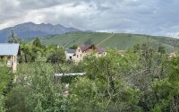 На участке растут цветы и кустарники, есть место для огорода, а также зона для постройки места для отдыха на свежем воздухе (есть стойка для подвесной качели). Тишина, чистый воздух и живописные виды на окружающие горы делают это место идеальным для семейных выходных.