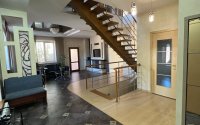 Двух этажный, цокольный этаж и мансарда 70 м2, скважина глубина 120 м, горячая вода, бойлер на 150 литров, подача на весь дом, центральная канализация, двор благоустроенный, 3-фазное электропитание, 22 кВт, на цокольном этаже сауна, (дерево липа, ни разу не использовалась), спорт зал, склад, прачечная, кладовая и элеваторный узел. На первом этаже гараж, входная группа, сан.узел, гостевой холл, кухня, гостиная. На втором этаже гостевая комната, хозяйская спальня с туалетом и двумя гардеробными, детская, кабинет, ванная комната.