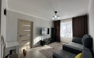 В квартире косметический ремонт. Натяжные потолки, пластиковые окна, балкон застеклен пластиковыми рамами.