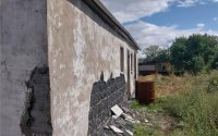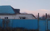 Крыша двухскатная из листового металла и профлиста над кухней. Во дворе в 1988 г. на участке начато строительство сарая площадью 65.6 кв.м. из пеноблока. Участок - 7,6 соток. Забор - металлический. Рядом с домом электросеть для подключения.