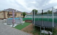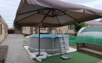 При желании можно сделать мансардный этаж на 70 кв. м, или построить второй этаж (прочность фундамента хоть ещё на два этажа). Есть вольер для собаки со своей комнатой 4кв. м. Есть огород с насаждениями и теплицей. Ещё на игровой территории устанавливаем для детей бассейн и батут.