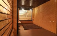 Придомовая территория выложена брусчаткой, задний двор - газон, высажены ценные породы деревьев и кустарников.
