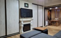 Просторная кухня-студия и столовая, две уютные спальни и совмещённый санузел. Встроенные вместительные шкафы в гостиной для хранения вещей очень экономят пространство, а электрический камин не только создаёт уютную атмосферу, но и согревает в дождливые осенние вечера.