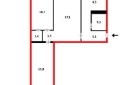 Планировка смежно-раздельная - проходной зал и две отдельные большие спальни.