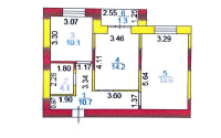 - Жилая комната площадью 14,2 кв. м. с выходом на застеклённую панорамными окнами лоджию (длина лоджии 2,55 м., ширина 1,25 м).