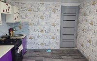 Площадь дома 77 квадратных метра, кухня - 12 метров.
