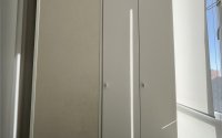 Межкомнатные двери высотой 2,20 в паре с высокими потолками создают гармонию в пространстве, и все это дополняется панорамными окнами.