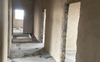Материал стен шлакоблочный до 2-го уровня, пол 1-го этажа бетонная стяжка.