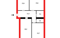 Общая площадь - 80 кв.м., площадь кухни - 13 кв.м. Балкон остеклен панорамными окнами, окна выходят в обе стороны дома. Материал стен кирпичный, что обеспечивает теплом, в холодные периоды года.