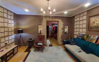 Общая площадь составляет 77,4 кв. м, кухня 15.4 кв. м. Высота потолков 3м.