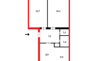Квартира улучшенной планировки, с комфортной кухней - студией .Коридор квадратный, комнаты раздельные.