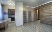 Кухня - студия с кухонным гарнитуром и бытовой техникой, санузел раздельный и выложен кафелем, пластиковые трубы, счётчики воды, титан, стиральная машина-автомат.