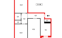 Общая площадь 68кв.м., кухня 8 кв.м.