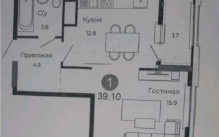 Продам 1-комнатную квартиру в ЖК Республика. Площадь – 38,8 м², 3/9 этаж.