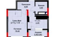 34.5 м², кухня – 9 м²
