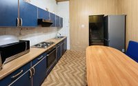 На первом этаже дома есть большая гостиная, кабинет, кухня, холл с камином, прихожая, санузел и ванная комната.