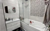 Общая площадь квартиры составляет 104,9 кв.м, она расположена на 12-м этаже 14-этажного дома. Квартира светлая, с удачной планировкой: две совмещённые ванные комнаты, отдельная меблированная кухня и два балкона. Установлены пластиковые окна, новая сантехника, счётчики, кондиционер.