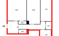 Общая площадь – 47 кв. м., кухня – 7 кв. м.