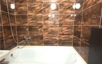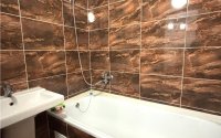На полу в коридоре, кухне, ванной и санузле выложен кафель.