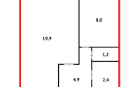 Общая площадь 38кв. кухня отдельно 8кв.м.