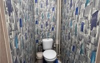 Санузел раздельный, выложен кафелем, счётчики воды, титан, пластиковые трубы.