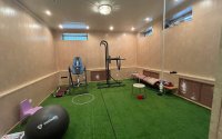 Просторный холл (43 м²), бильярдная, оборудованный тренажерный зал (25 м²), котельная, кладовые, а также полноценный спа-комплекс: сауна, предбанник, душевая и санузел.