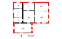 Общая площадь 73.1 кв.м. Кухня 5.7 кв.м.