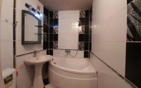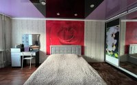 Спальня отделяется от зала раздвижными дверьми зеркалами.