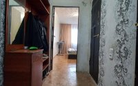 Пластиковые окна, чугунные радиаторы, на полу линолеум, в квартире сделана перепланировка (узаконена),требуется косметический ремонт. Кухня 8 кв. м, остаётся кухонный гарнитур.