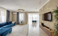 Просторная 4-комнатная квартира с современной встроенной кухней, кондиционером и уютной атмосферой в тихом дворе: рядом школы, детсады, магазины и парки; закрытая территория с охраной и видеонаблюдением, детская площадка, собственные кафе и магазины в ЖК, удобный двухуровневый паркинг.