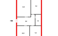 Потолок в зале и прихожей натяжной. В остальных выровненный.