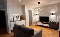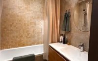 Полностью заменены трубы и сантехника на итальянские, установлены фильтры и датчики протечки. Электрика заменена. Пол — водостойкий кварц-винил (Германия). Смесители Grohe.