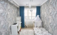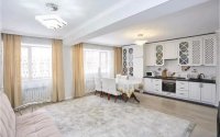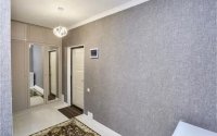 Гостиная совмещена с кухней, благодаря чему пространство выглядит светлым и открытым. Основная спальня и гостиная — очень просторные. В санузле и коридорах установлены тёплые полы, освещение управляется дистанционно.