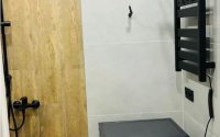 - Отделка ванной: керамогранит и плитка под дерево