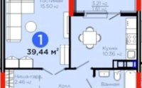 39.44 м², кухня – 10.36 м²